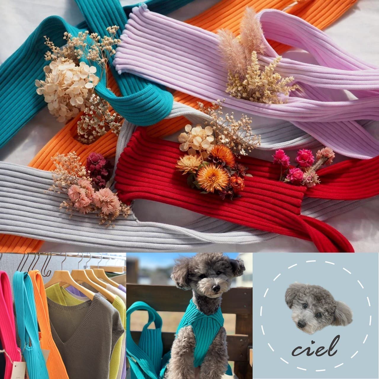 ご好評いただいておりますシームレスニットのサコッシュバックを販売いたします。 人気定番色のブラックと新色も加わります。 さわり心地・着心地がよく着る脱ぐも…ワンちゃんに負担のかからないシームレスニット服も販売します。 是非お立ち寄り下さい。