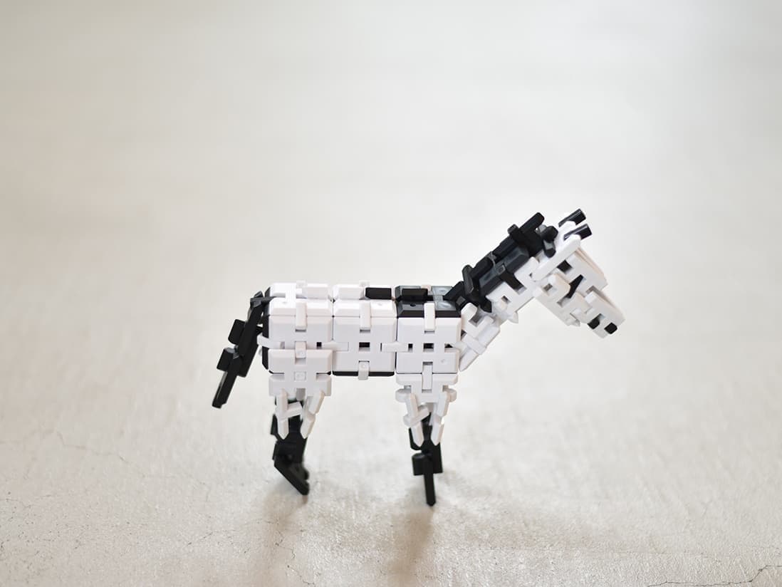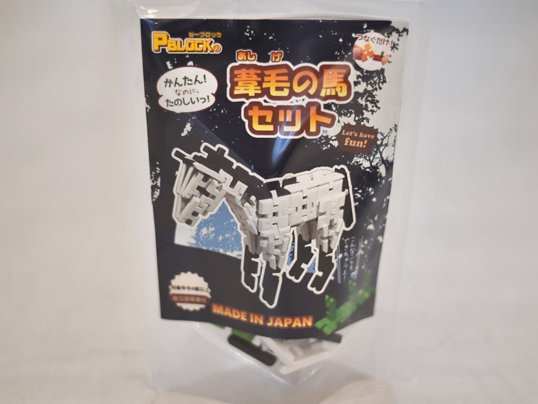 51 PBLOCK(葦毛の馬) ¥1,500 Pブロックのパーツは主に大、中、小のたった3種類です。4歳以上の育ち盛りのお子様へ!お父さんの組み立てホビー、おばあちゃんの脳トレグッズにも最適です!単純な形状でありながら複雑な形状を生み出せる基本設計です。 販売: 株式会社テラテック